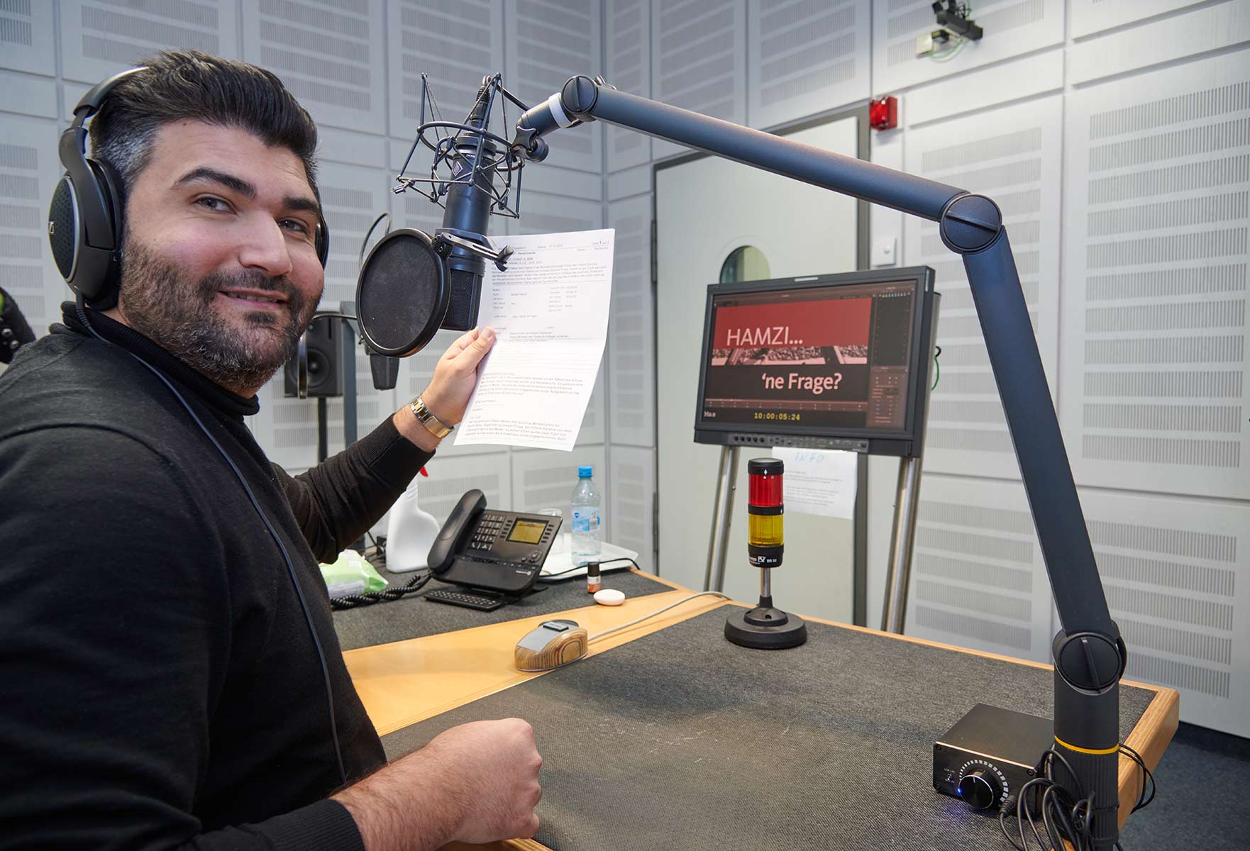 Oft wurde er in seiner Kindheit und Jugend mit Pseudofragen konfrontiert wie „Hamzi ‘ne Uhr?“ oder „Hamzi mal ‘ne Mark?“ Aber anstelle, sich darüber zu ärgern, war Hamzi Ismail schnell klar: „Mit meinem Namen kann man kreative Wortspiele machen. Damit könnte ich doch auch Geld verdienen.“ So kam es: Seit 2015 heißt es in der WDR Lokalzeit Düsseldorf „Hamzi ‘ne Frage?“ und in der ARD-Sendung „Live nach Neun“ hieß es 2020 „Hamzi‘s gewusst?“. Petra Verhasselt und Fotograf Michael Ricks haben den 34-jährigen Wahlrheinländer mit libanesischen Wurzeln in Düsseldorf getroffen. Ihr Treffpunkt: das WDR Funkhaus direkt am Rhein.