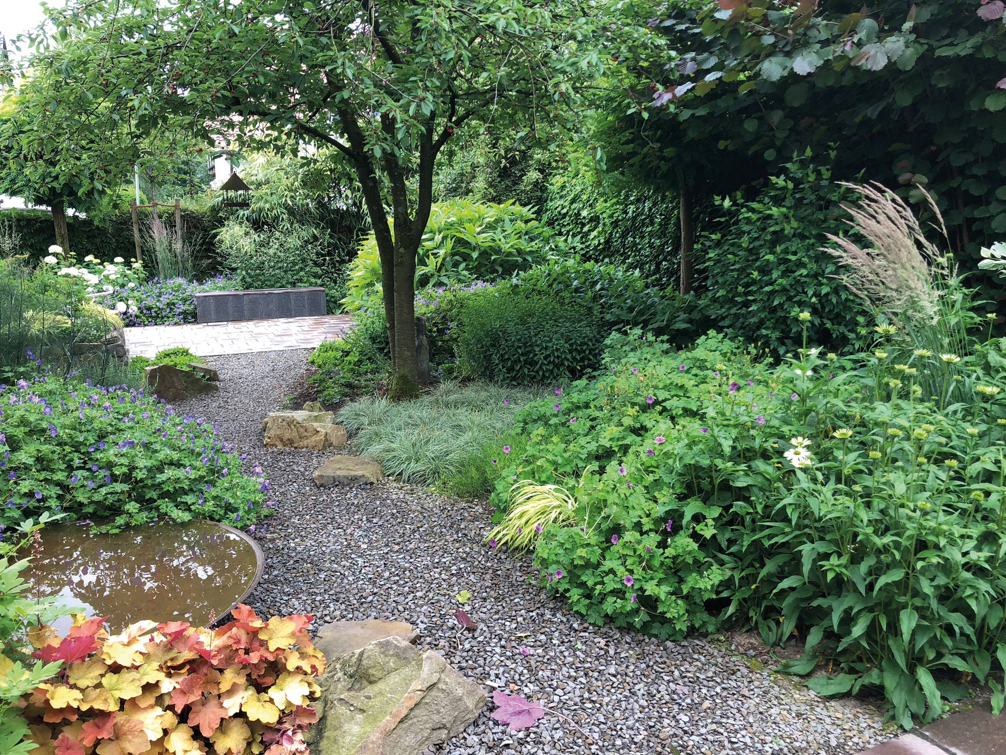 Vor 20 Jahren wurden in Privatgärten die Beete saisonaler bepflanzt als heute, nämlich mit Lieschen, Eisbegonien und anderen Einjährigen. Heute wird nachhaltiger angelegt mit einer Auswahl von Stauden, die den Blütenflor, den Winteraspekt, die Standfestigkeit und auch das abblühende Stadium berücksichtigen. Die Insektenfreundlichkeit spielt dabei eine große Rolle, denn als Gestalterin kann ich dazu beitragen, das Artensterben zu begrenzen. Die Natur stellt eine immense Auswahl an Stauden und Gräsern zur Verfügung: Von den weltweit ca. 12.000 Arten von Gräsern werden bislang nur ca. 3.000 Gräser für die Verwendung in Privatgärten genutzt. Früher hat man Bäume gepflanzt, ohne zu berücksichtigen, dass diese Bäume zukünftig ein Problem darstellen könnten. Zu schnelles Wachstum, Wurzeldruck und Fruchtfall sind heute nicht erwünscht. Vielmehr erwartet man heute in Stadtgärten einen langfristig geeigneten Baumbestand, der ohne Kappungen wachsen kann. Ich empfehle ausschließlich kleine Bäume in Privatgärten: zum Beispiel veredelte Hochstämme wie Malus 'Evereste', Liquidambar styraciflua 'Gumball' oder Prunus subhirtella 'Autumnalis'. Sehr gerne setze ich auch Cercis canadensis 'Merlot' - dessen rotes herzförmiges Laub ein besonderer Schmuck ist.