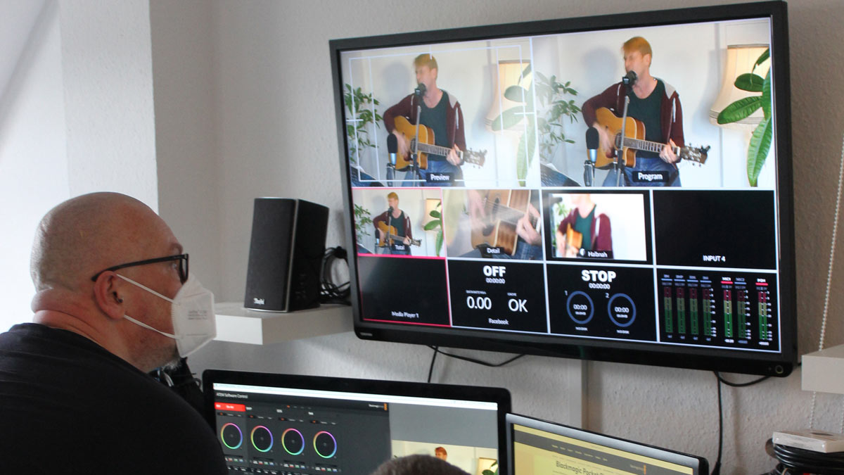 Diesen Gedanken hatte auch Carsten Bullert, gemeinsam mit Christoph Walter Vorstandsmitglied der Ortsgruppe der Partei „Die PARTEI“ in Krefeld. Vor einigen Wochen nahm er den Hörer in die Hand und rief Walter mit einer fixen Idee an. So entstand aus der Idee schnell ein ernstzunehmendes Projekt, die „Krefelder Kammermusik“. „Wie es die Krefelder von uns kennen, nutzen wir Spaß und Satire, um ernstzunehmende politische Botschaften zu vermitteln“, erklärt Walter. „Wir möchten, dass in der Coronapolitik Künstler und Kreative nicht vergessen werden. Die fehlende Bühnenpräsenz sorgt aber für Unsichtbarkeit. Das wollten wir ändern.“ Gemeinsam mit Phil Müller verwandelte Christoph Walter das Dachgeschoss an der Nordstraße in eine virtuelle Bühne. Ein Greenscreen wurde eingerichtet, Kameras gekauft und installiert und Mikrofone aufgestellt. Mitte April flimmerte das erste Livekonzert aus Krefeld via Facebook-Stream über die Partei-Seite. „Das Feedback aus der Künstlerszene ist riesig“, freut sich Walter. „Wir haben einfach wild angefragt und so viele Musiker sagen zu. Auch wenn wir keine Gagen zahlen können, lechzen die Künstler gerade nach Bühnen.“