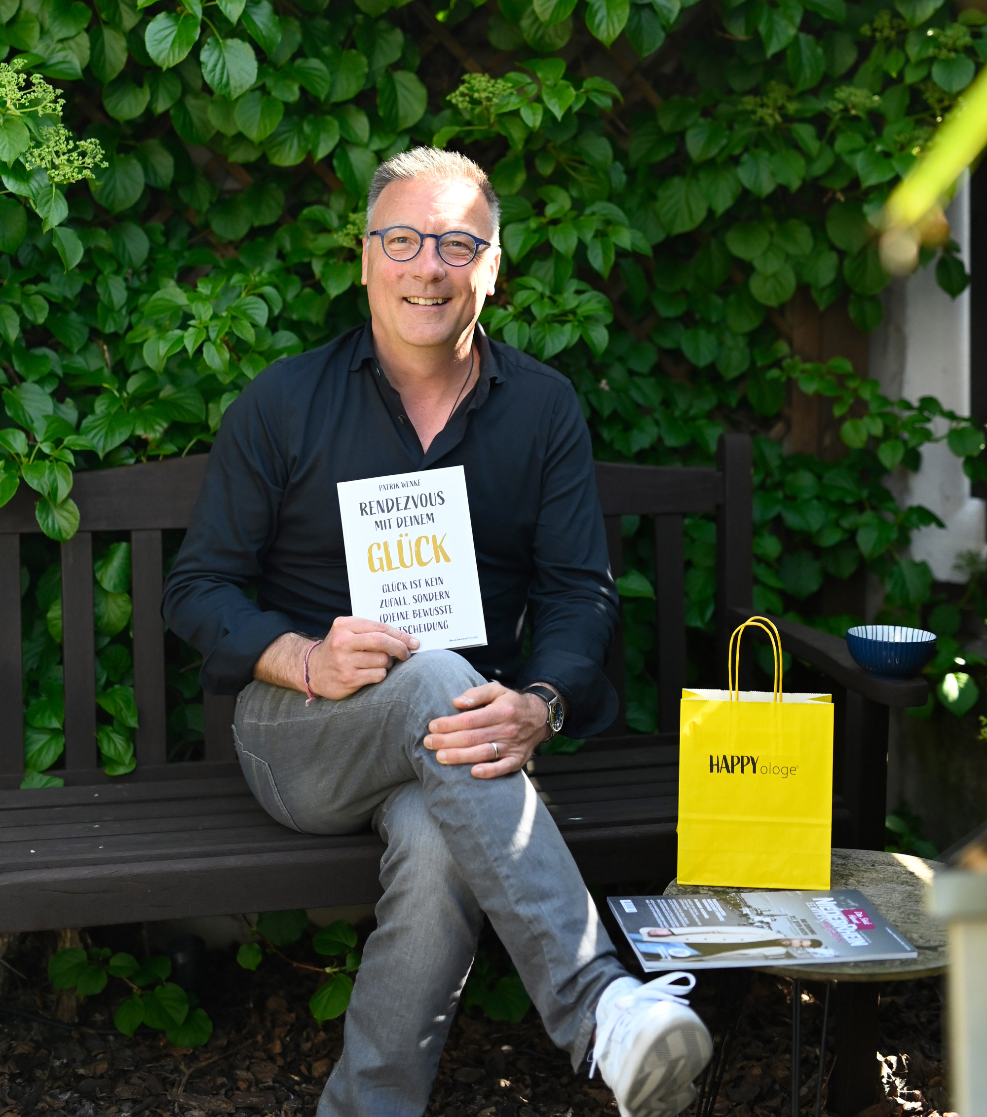 Als Patrik Wenke einem Freund von diesen geistigen Erlebnissen berichtete, fiel erstmals das Wort Happyologe. „Mein Kumpel hat schallend gelacht, als er diese Worter-findung hörte.“ Ernsthaftes Interesse an dem originell klingenden Begriff hatte etwas später der Verlags-Verantwortliche, als Patrik Wenke ihm von seiner Absicht berichtete, die Lehren des Glücks-Professors kombiniert mit seinen Erfahrungen auf gut 200 Seiten zwischen zwei Buchdeckel zu pressen. „Als ich allenthalben echtes Interesse verspürte, bin ich zum Patentamt gegangen und habe den Begriff des Happyologen in allen denkbaren Gender-Variationen schützen lassen“, erzählt der Dormagener.