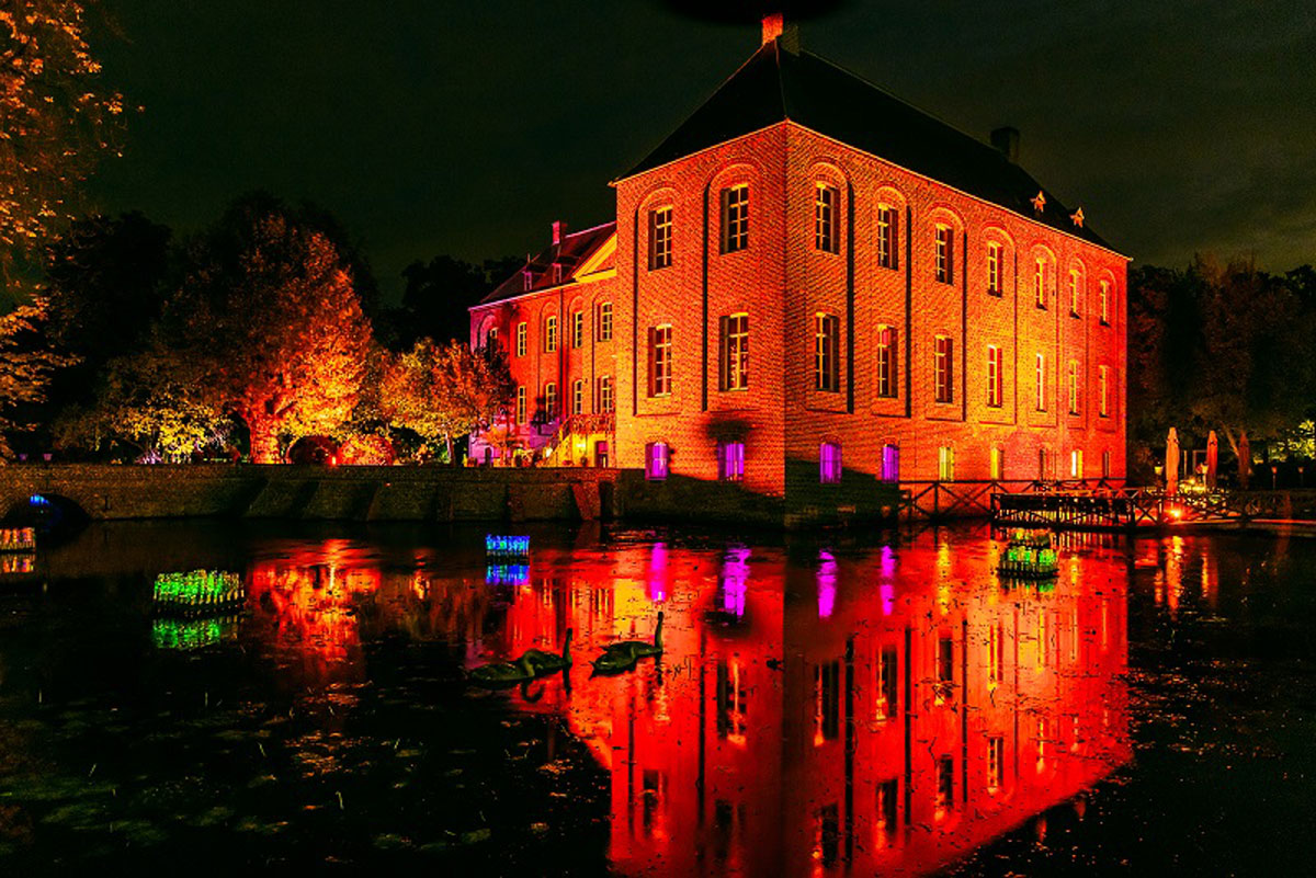 Vom 9. bis 25. Oktober werden sich die Tore der Schlossgärten Arcen wieder für eine neue Ausgabe des Lichtkunstfestivals ‚Enchanted Gardens‘ öffnen. Das Lichtkunstfestival wird in diesem Jahr um eine Woche verlängert, damit die Besucherzahl über einen längeren Zeitraum verteilt werden kann. Das Lichtkunstfestival startet an den Veranstaltungstagen um 19.00 Uhr (Ende: 23.00 Uhr). Tagsüber können bei der Blumenshow ‚Herbstzauber!‘ imposante Blumenobjekte aus Tausenden Chrysanthemen, Heidepflanzen und anderen Herbstblühern bewundert werden.