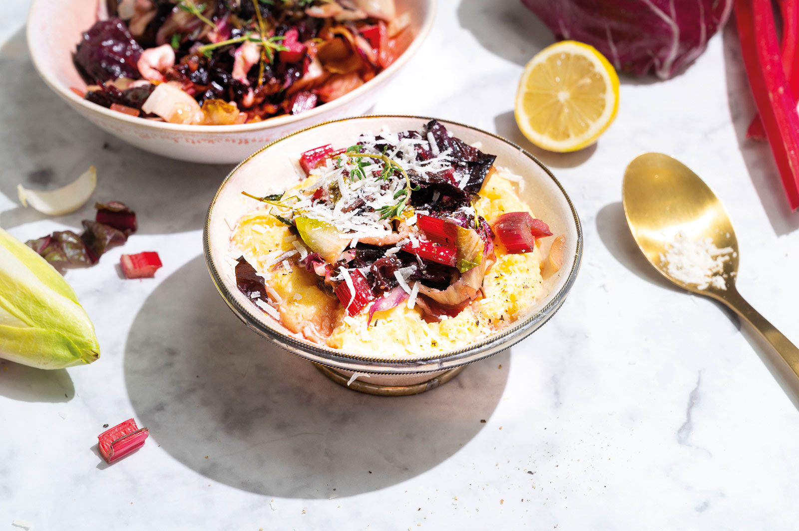 Polenta auf Schalen verteilen, Bittergemüse darauf geben und mit geriebenem Parmesan genießen!