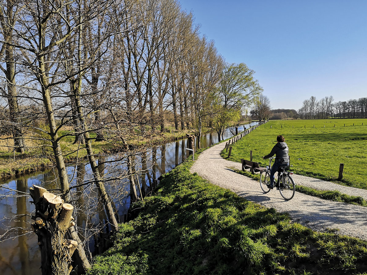 Der Wasserblick eröffnet eine schöne Aussicht auf die Mündung der Nette. Die Nette hat von ihrer Quelle in Dülken gerade mal 28 Kilometer auf dem Buckel. Im Bett der Niers schafft sie die knapp 50 Kilometer bis zur Maas im niederländischen Gennep nun spielend. Am Nette-Niers-POI in Wachtendonk ranken sich die Mythen. Die Menapier, ein keltisch-germanischer Volksstamm, soll dort rituelle Handlungen vollzogen haben. Heute entdeckt man dort mit etwas Glück den Weißstorch. Der war hier vor 2000 Jahren auch schon heimisch…