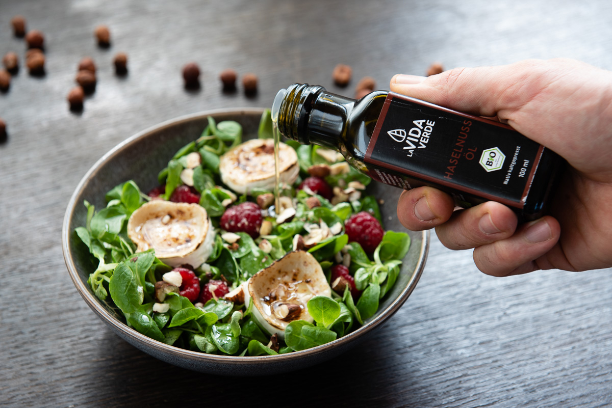 Feldsalat mit Haselnussöl und Ziegenkäse