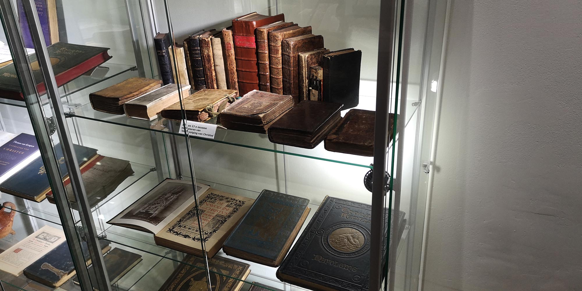 Zu sehen sind in Zwolle seit März 2022 einige Editionen der „Imitatio Christi“ sowie weitere Thomas nahe Schriften, Relikte in Bentheimer Sandstein aus der Bergkloster-Ruine, historische Thomas-Abbildungen, Sekundärliteratur zum Wirken Thomas' sowie Skulpturen und Bilder zeitgenössischer Künstler. Allein die Imitatio-Christi-Ausgaben bilden zusammen mit den rund 2.000 Ausgaben des Kempener Thomas-Archivs eine beachtliche Sammlung. „Das ist eine schöne Ergänzung“, sagt Dr. Ulrike Bodemann-Kornhaas, die in Kempen für die Thomas-Stiftung Kiefer das Thomas-Archiv leitet. Unter den Museumsstücken befindet sich ferner ein Tableau einer 2001 entstandenen Plastik des Bildhauers Tom Waterreus, die die Stichting mit Unterstützung des örtlichen Lions Clubs auf den Weg gebracht hat. Im Keller des Museums haben die Zwoller Thomasfreunde einen angenehm kühlen Filmraum geschaffen, in dem der 2018 anlässlich des 30-jährigen Bestehens der Stichting entstandene Thomasfilm wohltemperiert gezeigt wird.
