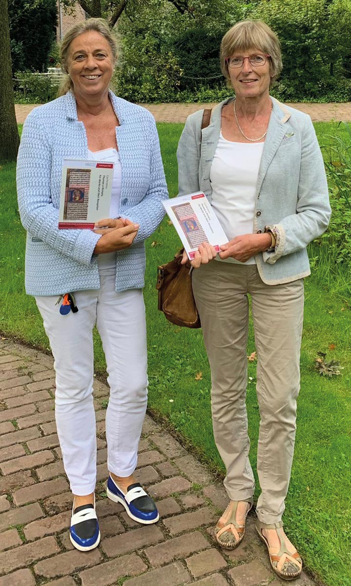 Angela Janssen erinnert auch an das vielbeachtete Magazin „hemerken“. Hemerken: Das ist der bürgerliche Familienname von Thomas a Kempis, bedeutet „Hämmerchen“ und deutet auf den Beruf des Vaters vermutlich als Feinschmied hin. Die Stiftung Kiefer hat dieses hochwertig gedruckte Heft anno 2018 herausgegeben. Reflektiert wird darin von Journalisten, Wissenschaftlern, Pädagogen, Politikern, Geistlichen und Intellektuellen der Tiefgang des Thomas, verpackt in leichter Sprache, geistreich geschrieben und treffend illustriert. Jan Bijlsma beispielsweise ist angetan vom Aufsatz „Das Treffen von Kempen“, in dem der Kunsthistoriker Arnt Cobbers enthüllt, wie sich Thomas und andere Kultur-Größen im Jahr 1453 in Kempen begegneten. „Die Grenzen zwischen Fiktion und historischer Wahrheit verwischen in diesem Aufsatz“, schmunzelt Angela Janssen über das originelle Historienbild und freut sich über die positive Resonanz aus Zwolle.