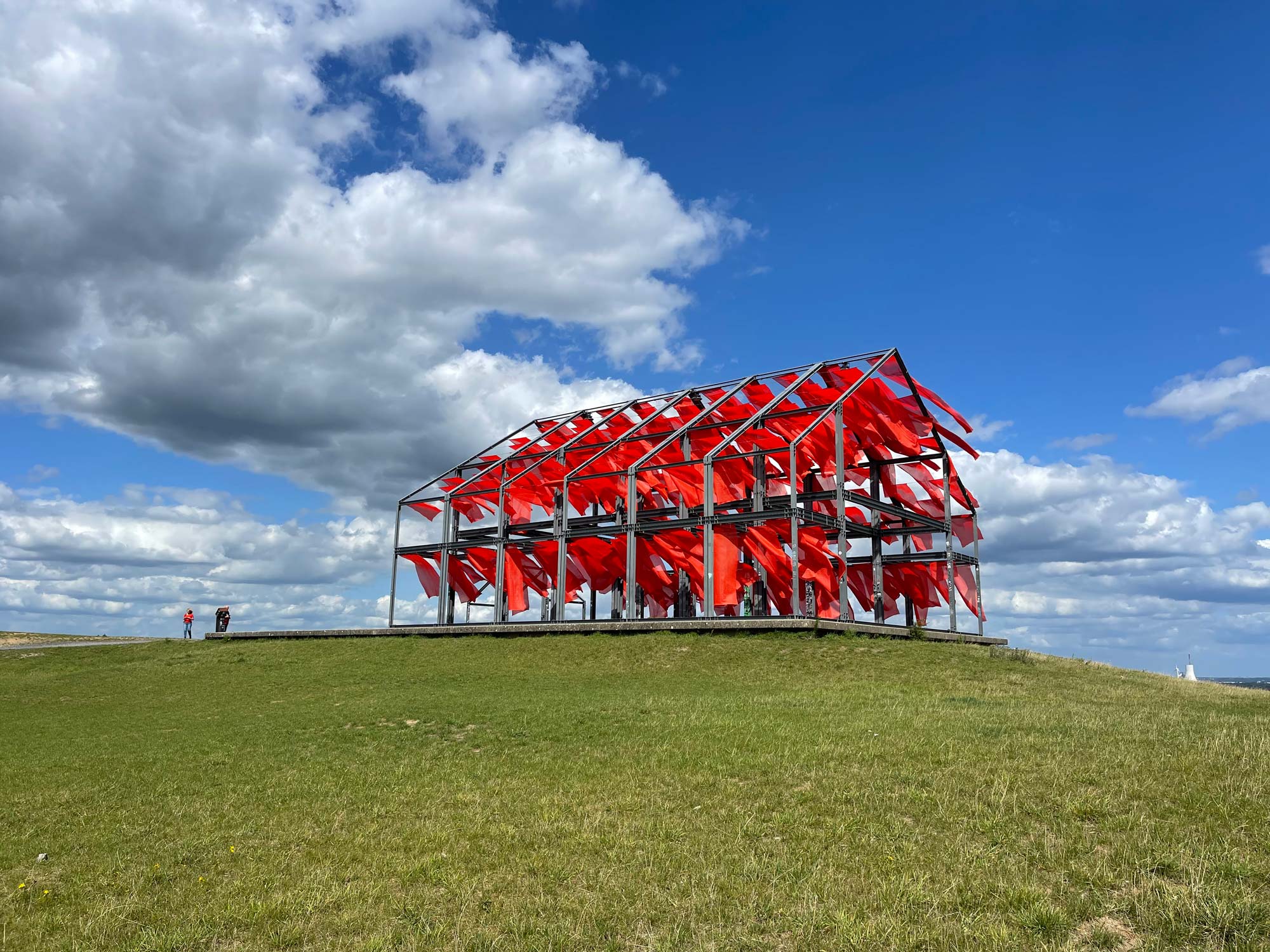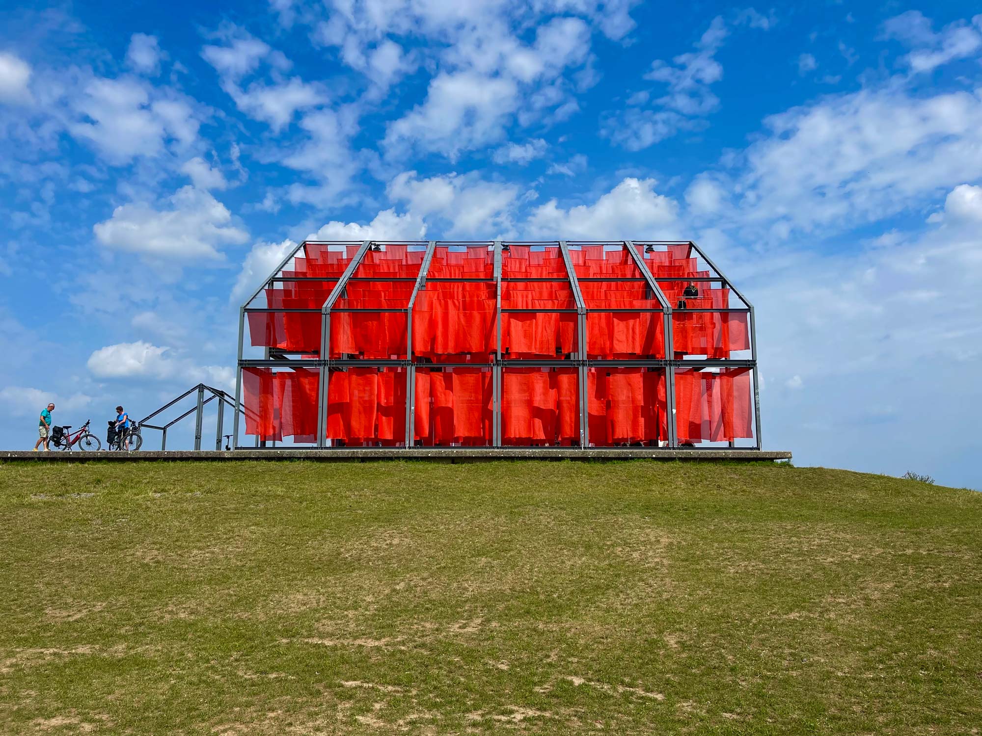 Ein strahlendes Orangerot weht seit dem 4. Juli 2025 weithin sichtbar über das Hallenhaus auf der Halde Norddeutschland. Dort, wo schon die „Kathedrale des Windes“ von Jens J. Meyer zum Wahrzeichen wurde, hat nun die international bekannte Künstlerin Danuta Karsten ihre Installation „Windzeichnung“ realisiert – ein Kunstwerk, das mit den Elementen spielt, sie sichtbar macht und zugleich Fragen nach Raum, Erinnerung und Transformation stellt.