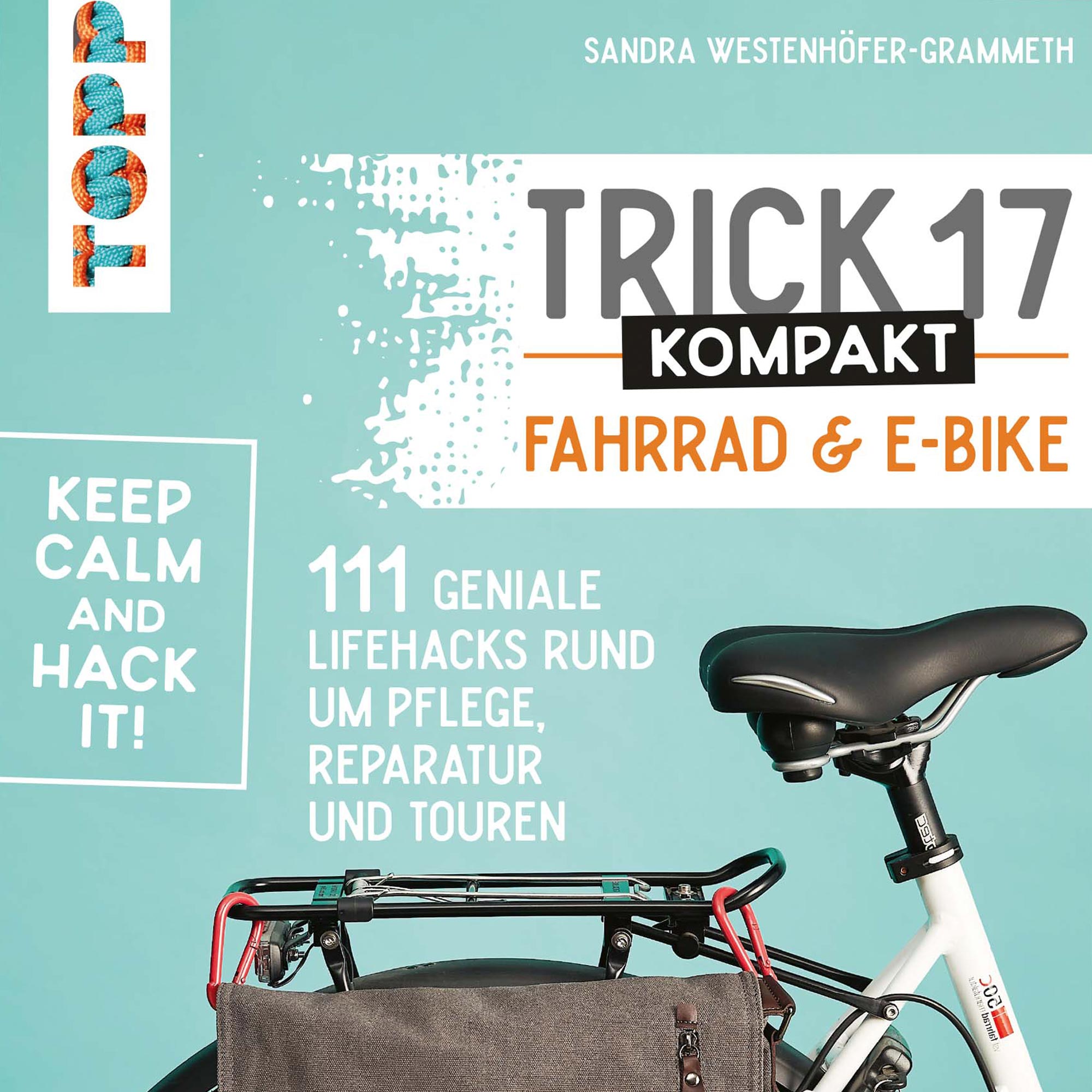 TRICK 17 KOMPAKT – Fahrrad & E-Bike von Sandra Westenhöfer-Grammeth und Armin Westenhöfer ist im TOPP-Verlag* erschienen und erhältlich. 160 Seiten bebilderter Ratgeber mit Tricks, kreativen Lösungen und Lifehacks. Ein perfekter Alltagshelfer. ISBN 9783772446344, 12,00 EUR