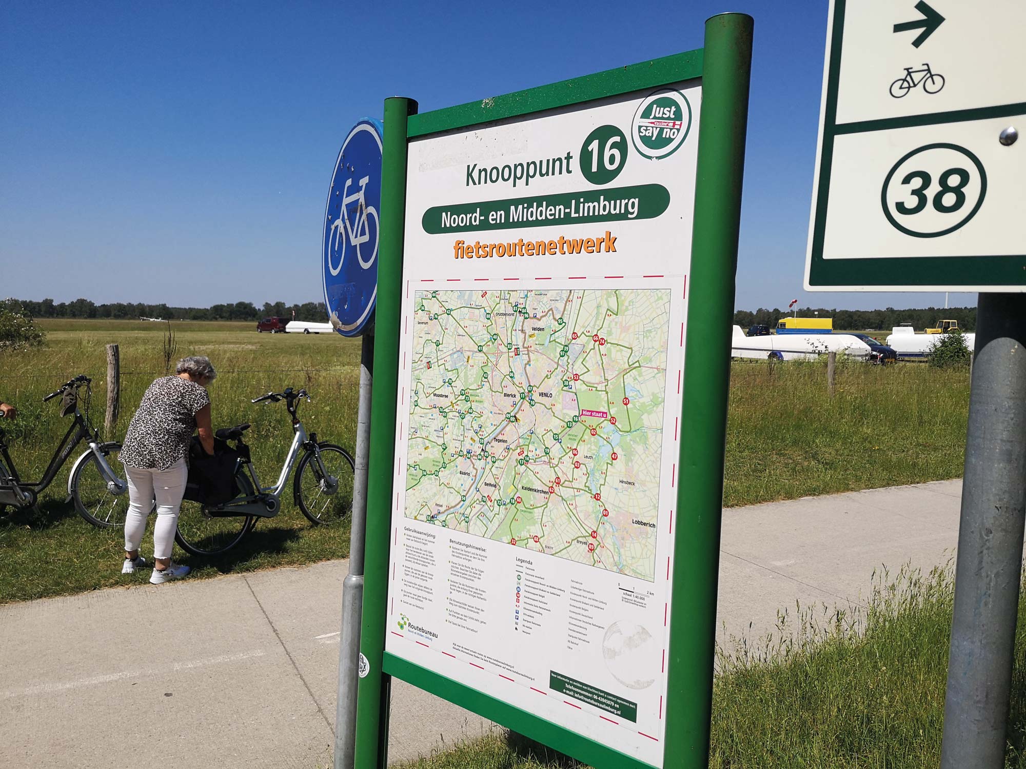 Man trifft sich am Knooppunt 16 „Noord- en Midden-Limburg“ und folgt später den Nummern 13 und 10, um mitten in Venlo zu landen. Das Knooppunt-Hopping macht Spaß und erspart den lästigen Blick auf Karte oder Smartphone. Am Eiswägelchen stehen die Kinder Schlange, während die Eltern das luftige Geschehen auf der riesigen Magergrasfläche beobachten, wo die Segler über die Kurbel in den heute blauen Grenzlandhimmel gezogen werden.