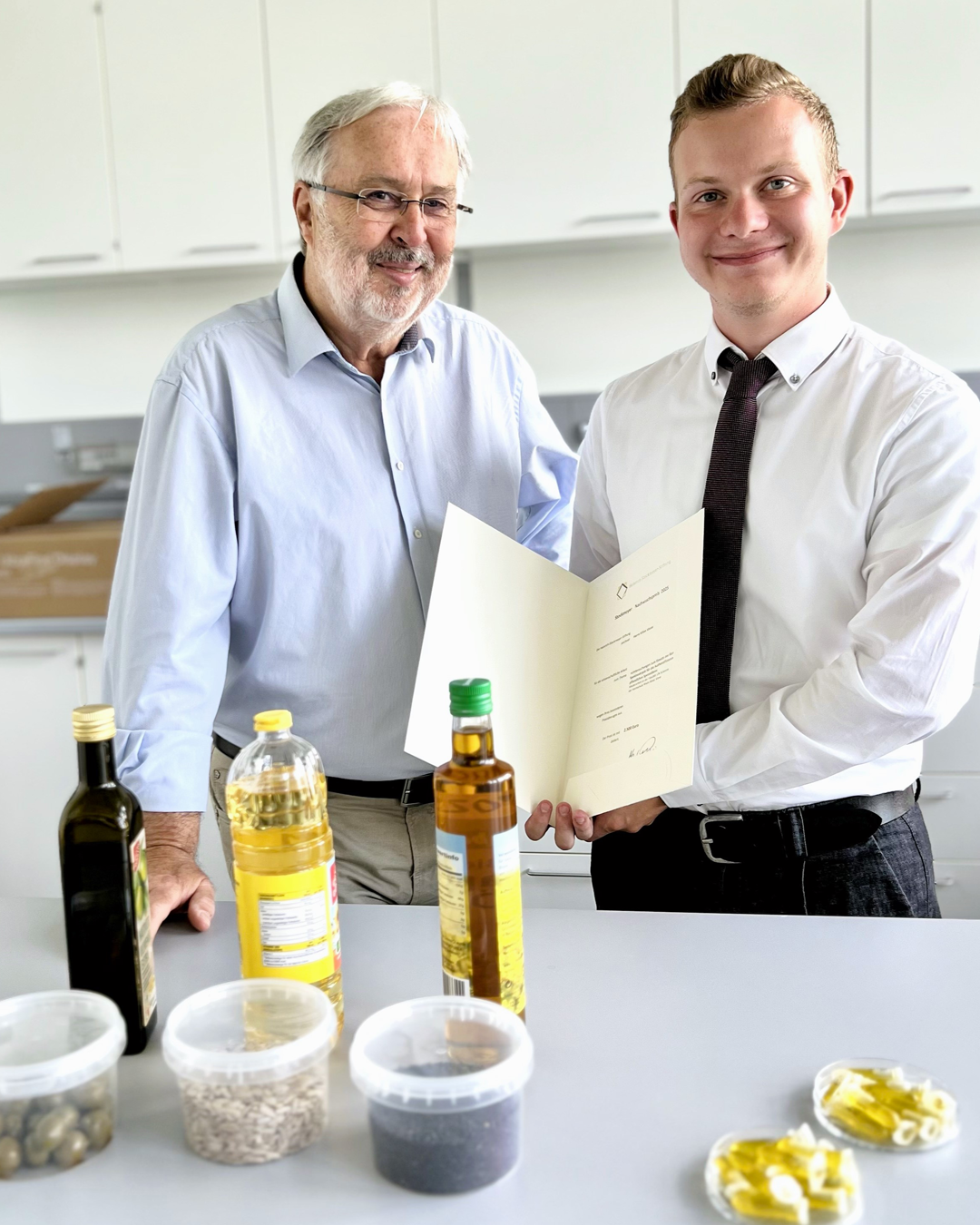 Für seine Masterarbeit im Studiengang Lebensmittelwissenschaften hat der Absolvent Kilian Visser eine hochinnovative Methode entwickelt, mit der sich schnell und präzise Verfälschungen von pflanzlichen Speiseölen aufdecken lassen. Die Methode kann einen entscheidenden Beitrag zum Verbraucherschutz leisten. Für diese Entwicklung wurde der junge Wissenschaftler nun mit dem Nachwuchspreis 2025 der Heinrich-Stockmeyer-Stiftung ausgezeichnet.