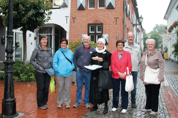 „Die Moerser Geschichte hat viele interessante Frauengestalten zu bieten, die möchte ich unseren Gästen gerne näher bringen“, beschreibt sie das Anliegen ihrer Führungen. Ein Vorhaben, das ihr bei den Mitgliedern der belgischen VHS-Gruppe offenbar gut gelang. Trotz Dauerregens folgten sie ihr zwei Stunden lang mit großer Aufmerksamkeit, und bedankten sich wenig später noch einmal per E-Mail für den „tollen Nachmittag“.