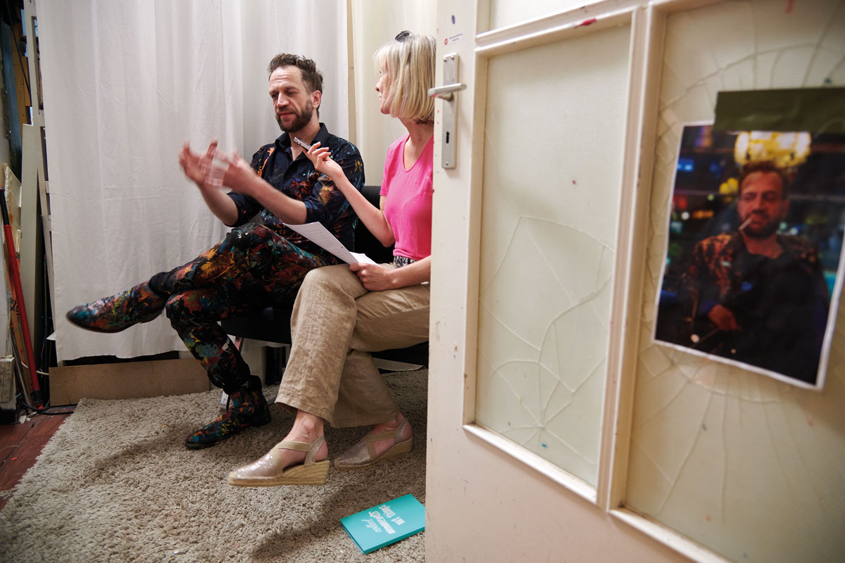 Karsten, der nichts um „moderne“ Techniken wie E-Mail und WhatsApp gibt, schreibt kurz vor unserer Ankunft eine SMS: „Hi, Petra, meine Klingel ist defekt. Wenn ihr da seid, ruf mich doch bitte kurz an.“ Künstlerhaushalt? Ja, aber was für einer! Unten an der Haustüre empfängt uns Karsten Breidenbroich mit großer Empathie und sympathisch-ironischem Witz. Es wird eine Freude, ihn in den kommenden zwei Stunden näher kennenzulernen.
