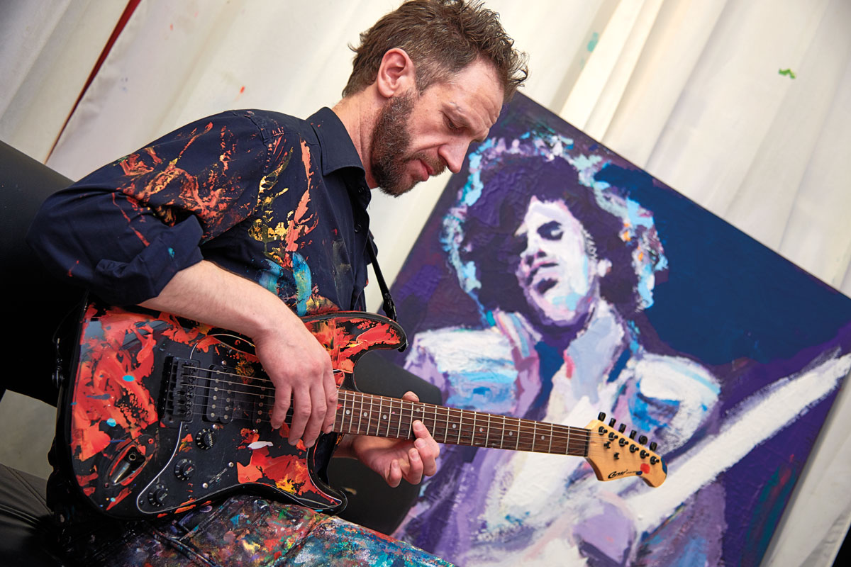 Der 47-Jährige trägt einen knallbunt bemalten Anzug und ebenso bunte Schuhe. Er ist eben MalKarsten, und da fängt er folglich bei sich selbst an. Genau das ist auch der Schlüssel zu seinem internationalen Erfolg, gepaart mit ein bisschen Glück. „Willkommen in Mittelerde!“ Mit diesem Hinweis auf Tolkiens fantastische Welt öffnet Karsten die Tür zu seinem Reich – und er hat nicht untertrieben. Just in dem Moment, als wir über die die Schwelle treten, tauchen wir ein in eine Welt voller Licht und Farben, künstlerischer Energie und menschlicher Wärme. Wir sehen Räume voller Kunst: rund 60 großformatige Werke, darunter Auftragsproduktionen hinter einem Leinenvorhang im langen, schmalen Flur sowie fertige und halbfertige Bilder in den übrigen Zimmern. Naturtalent und Autodidakt Karsten Breidenbroich, der an der Düsseldorfer Fachhochschule zunächst Betriebswirtschaft und später Innenarchitektur studiert hat und in diesem Beruf auch sechs Jahre tätig war, malt, seit er 17 ist.