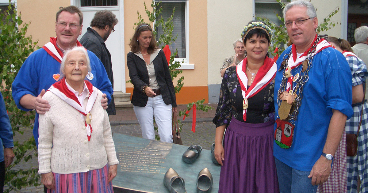 1925 wurde dann erstmals für das beliebte Volksvergnügen ein eigenes Klompenkönigspaar gekürt, das zum „Buurenball“ natürlich in Klompen erschien. Für seinen Auftritt dort wurde das Paar von zu Hause abgeholt, wo es zunächst eine kräftige Brotmahlzeit und einen geistreichen Schluck servierte, um dann anschließend mit seinem Begleitzug zum Kirmesplatz zu marschieren, vorne weg ein Standartenträger mit einem Schrubber, an dem in Ermangelung einer Fahne ein Aufnehmer im Wind flatterte. Dann kam der Zweite Weltkrieg und beendete den schönen Brauch.