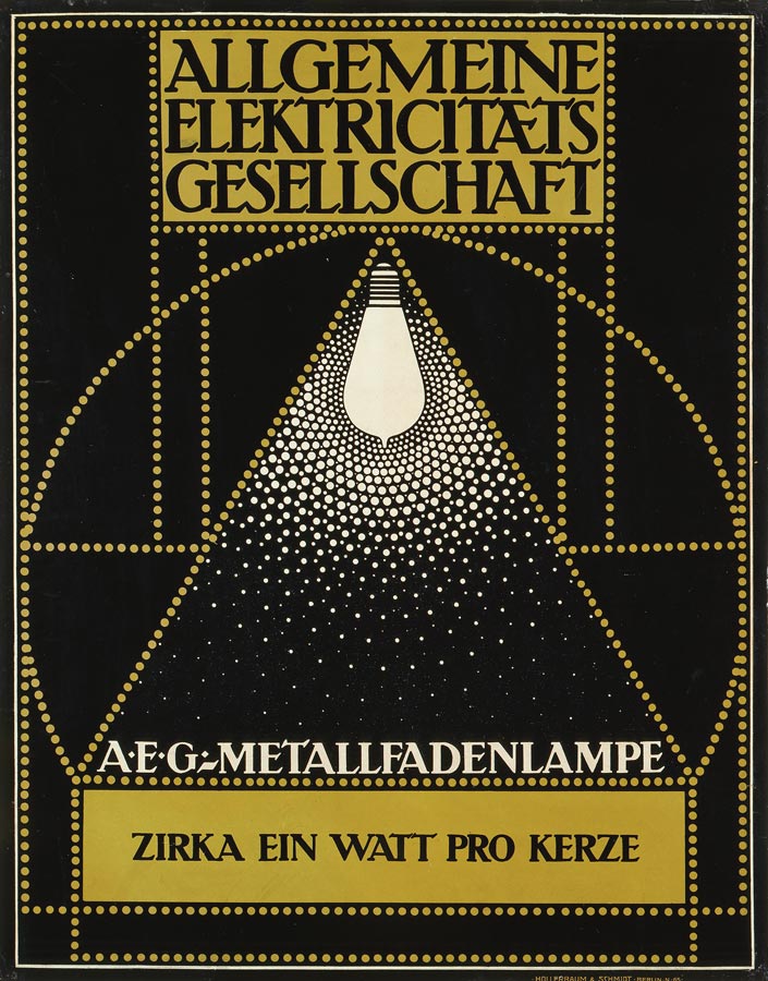 Natürlich hat sich das Kaiser Wilhelm Museum im Bauhaus-Jahr 2019 intensiv dem Einfluss von Peter Behrens gewidmet. Das Praktische und das Ideale miteinander in Einklang bringen – so formulierte es der Erfinder des AEG-Schriftzugs programmatisch in einem Brief an Deneken. Das Kaiser Wilhelm zeigte erstmals in einer Ausstellung seine Sammlungsbestände des Künstlers Behrens. Unter den insgesamt 250 Behrens-Werken aus der Zeit zwischen 1900 und 1911/12 sind Werbegrafik und Typographie, Gläser, Tapetenentwürfe, Plakate, Holzschnitte, Bücher, Kataloge und Fotografien. „Diese Werke machen deutlich, wie Behrens sich vom Jugendstil-Künstler zum Vorreiter der modernen Werbe- und Industriegestaltung entwickelt hat“, berichtet Katia Baudin, die vor ihrer Krefelder Zeit am Museum Ludwig in Köln gewirkt hat.