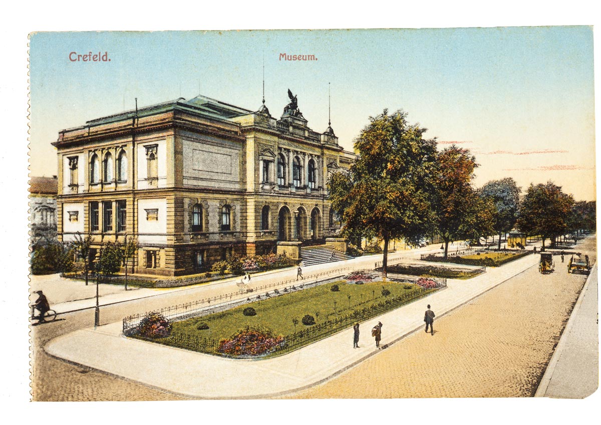 1897 gegründet, war das Museum im italienischen Renaissance-Stil als ein Haus für Kunst und Kunstgewerbe konzipiert, in dem freie Kunst und Alltagsgestaltung eng verbunden waren. Der Gründungsdirektor Friedrich Deneken (1857-1927) gehörte zu den progressivsten Vertretern der Reformbewegungen in Deutschland. Mit Peter Behrens (1868-1940), einem Pionier des modernen Industriedesigns, tauschte sich Deneken ab 1898 aus. Behrens wiederum war dem Bauhaus verbunden. In seinem Architekturbüro arbeiteten Bauhaus-Strategen wie Walter Gropius, Ludwig Mies van der Rohe und Le Corbusier. „Im Kaiser Wilhelm Museum hat sich ein 150 Seiten langer Schriftwechsel erhalten, der den Dialog zwischen einem ambitionierten Museumsdirektor und einem aufstrebenden Künstler dokumentiert“, berichtet Katia Baudin, seit 2016 Direktorin der Kunstmuseen Krefeld.