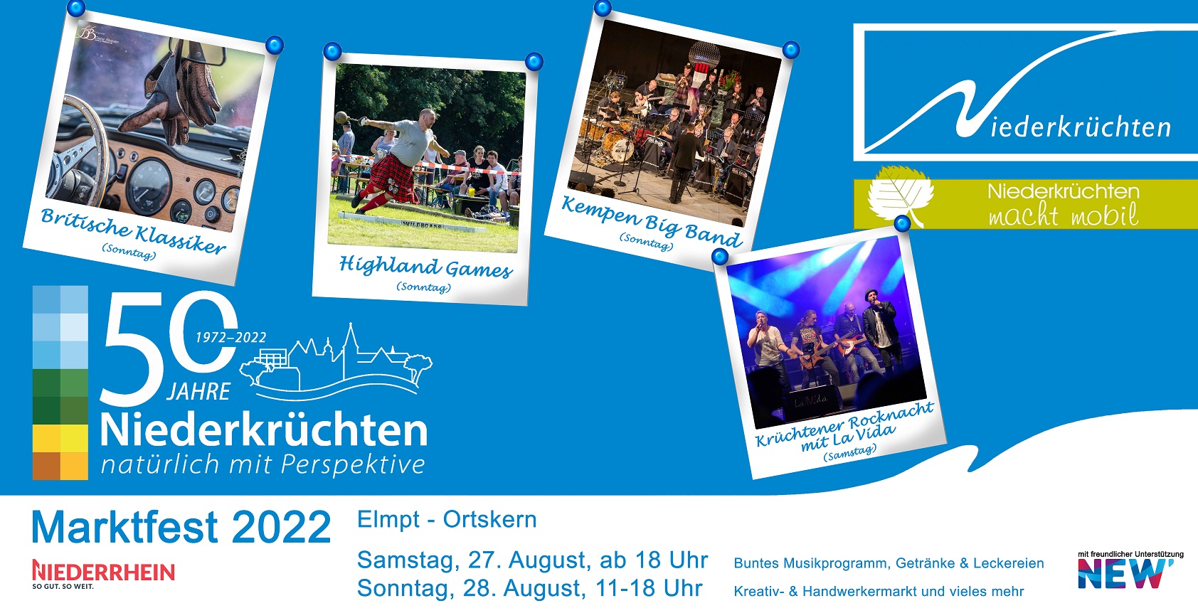 Ganz im Westen des Kreises Viersen gelegen entstand die heutige Gemeinde Niederkrüchten 1972 im Rahmen der kommunalen Neugliederung aus den beiden Altgemeinden Niederkrüchten und Elmpt. Sie macht in vielerlei Hinsicht vor allem eines aus: Die Perspektive. Und so feiert die Gemeinde auch den runden Geburtstag unter dem passenden Motto „Niederkrüchten – natürlich mit Perspektive“.