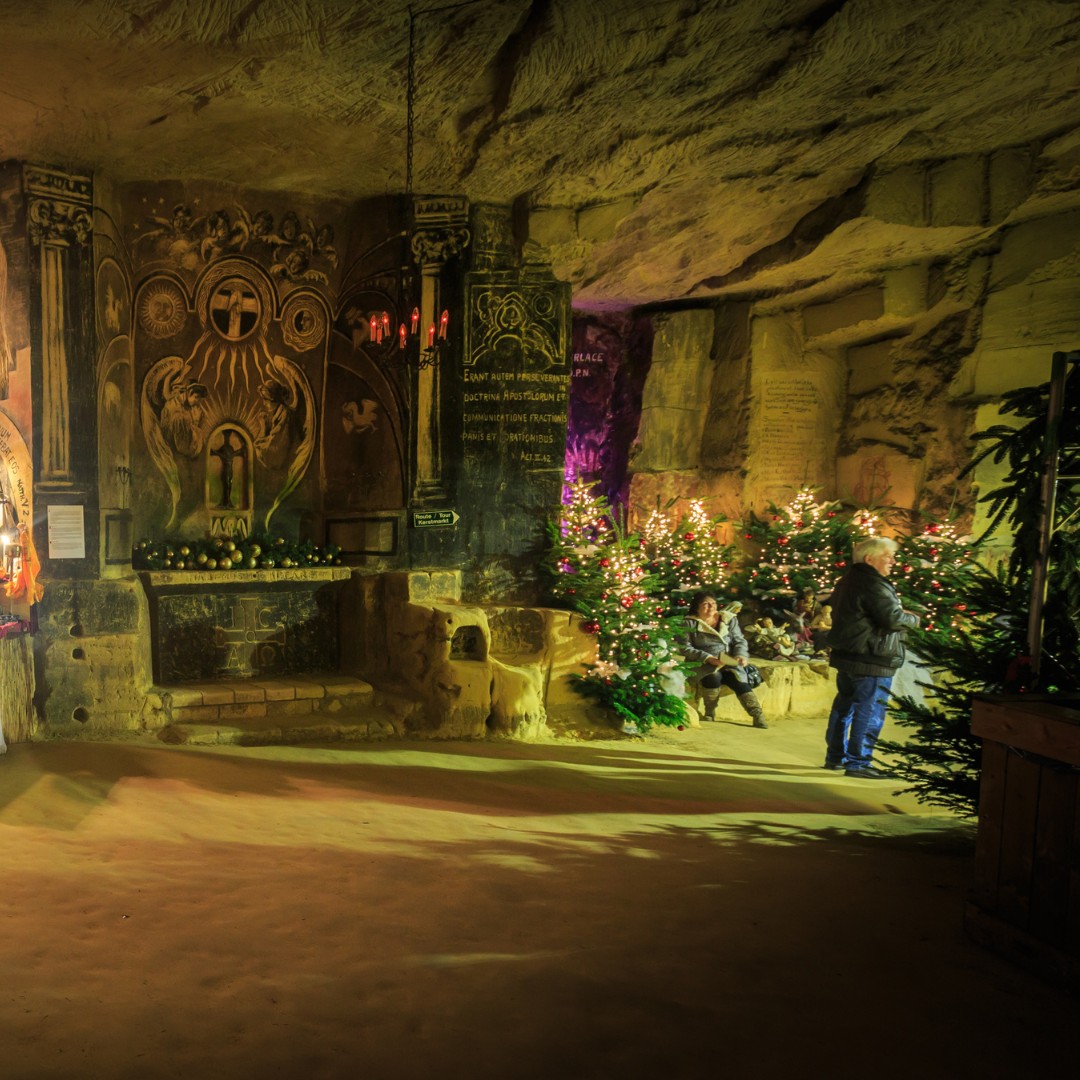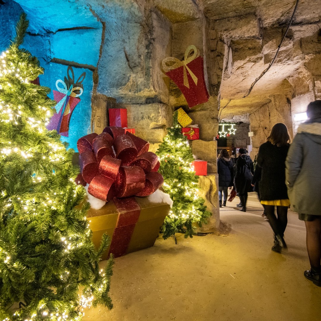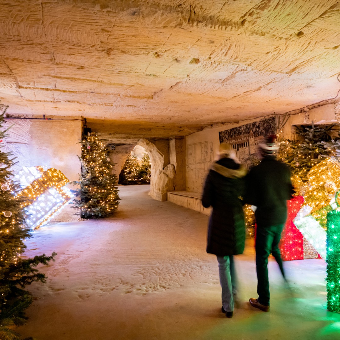Was Valkenburg so einzigartig macht, sind die unterirdischen Weihnachtsmärkte. In den historischen Mergelgrotten, etwa der Fluweelengrot oder der Gemeentegrot, führt der Weg durch stimmungsvoll beleuchtete Gänge, vorbei an liebevoll gestalteten Ständen mit Kunsthandwerk, Weihnachtsschmuck und regionalen Spezialitäten.