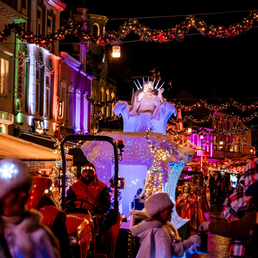 Ein fester Bestandteil des Weihnachtsprogramms ist die Christmas Parade, die mehrmals pro Woche durch die Altstadt zieht. Beleuchtete Wagen, Tänzerinnen und Tänzer sowie bekannte Figuren verbinden Märchenhaftes mit der historischen Kulisse der Stadt. Die Parade bringt Bewegung und Leuchten in die dunklen Winterabende, ohne die ruhige Grundstimmung zu überdecken.