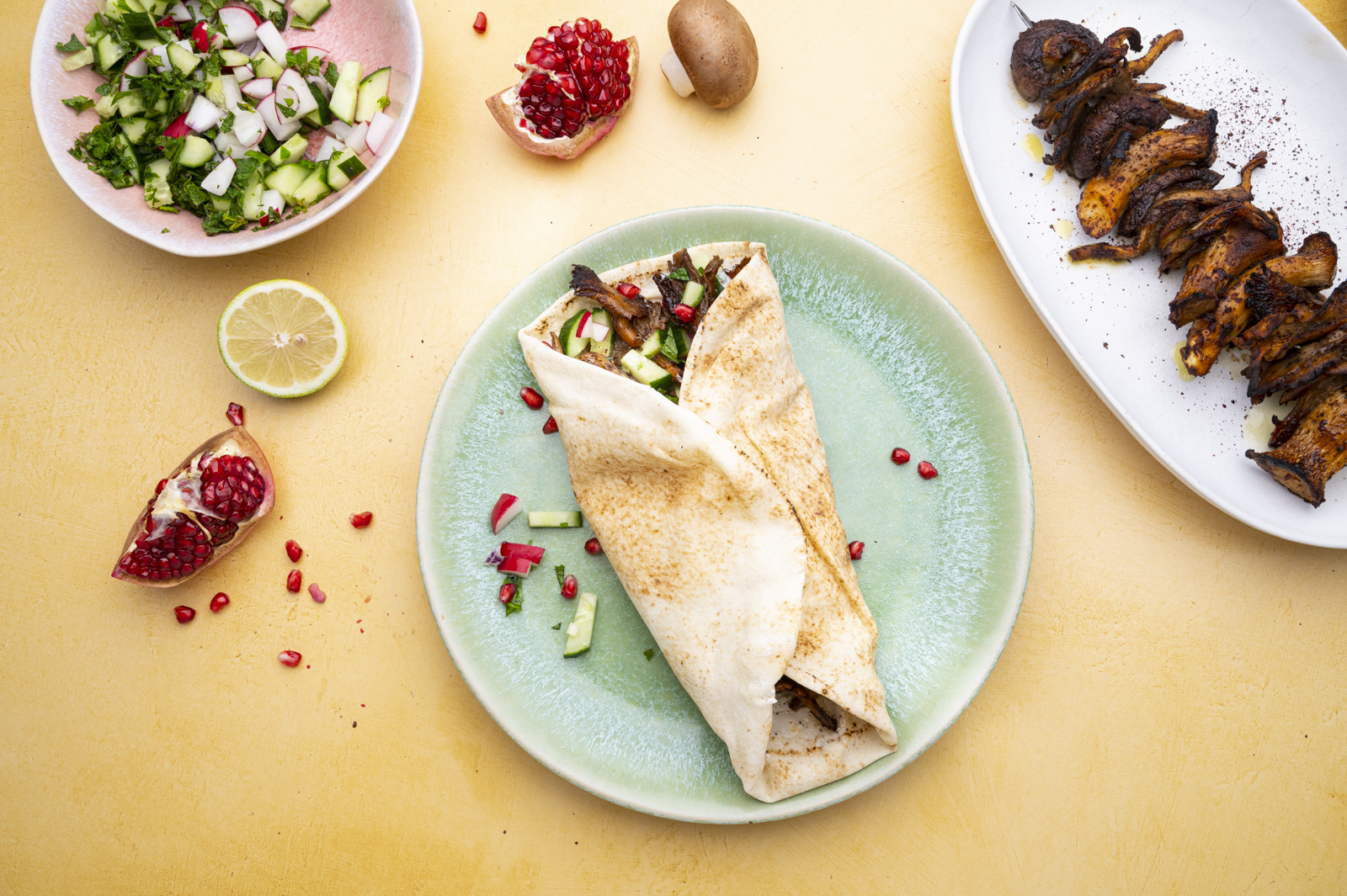 Pilz-Shawarma mit Gurken-Radieschensalat